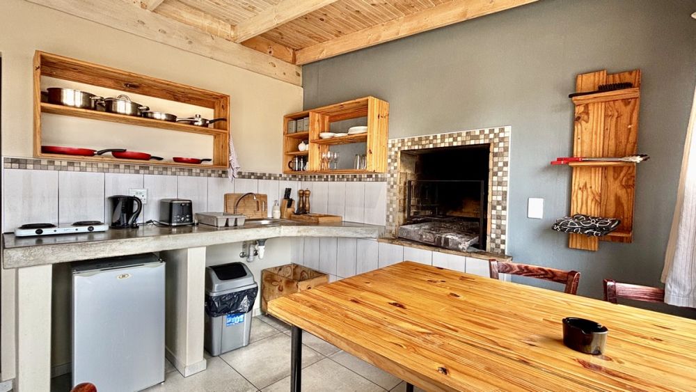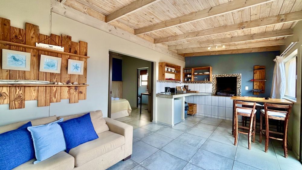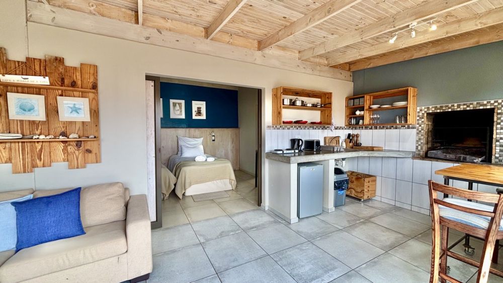Our self-catering unit can accommodate 4 pax. This seaside cottage has an indoor "braai", open-plan kitchen with an under-counter fridge, small living /dining area and en-suite bathroom.